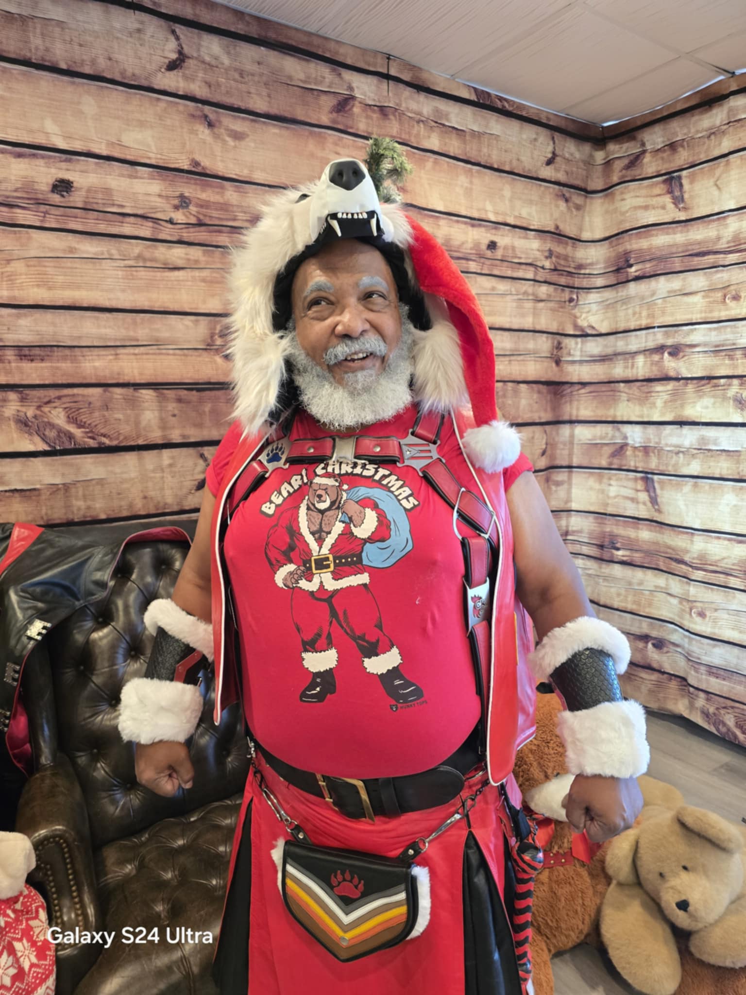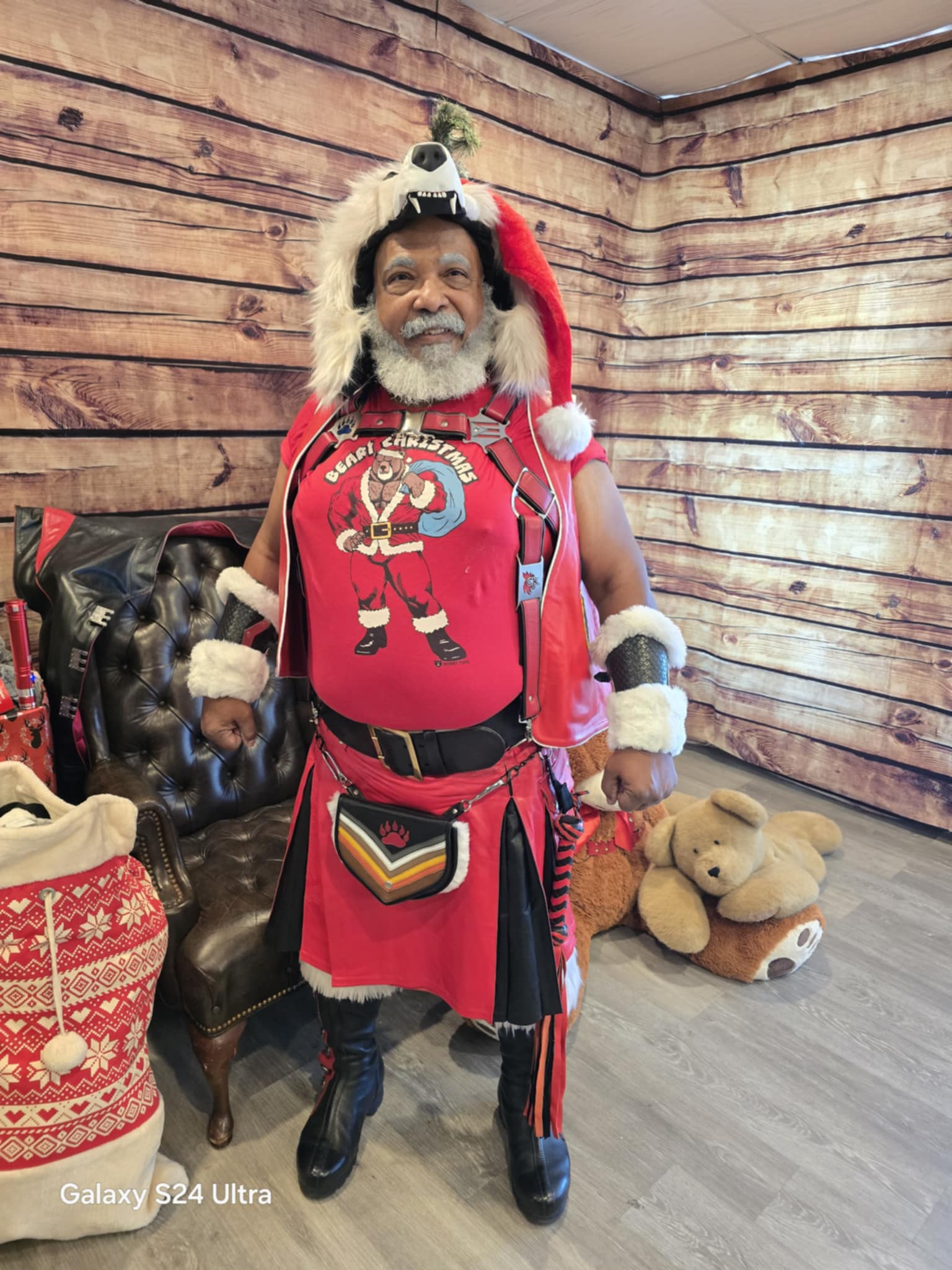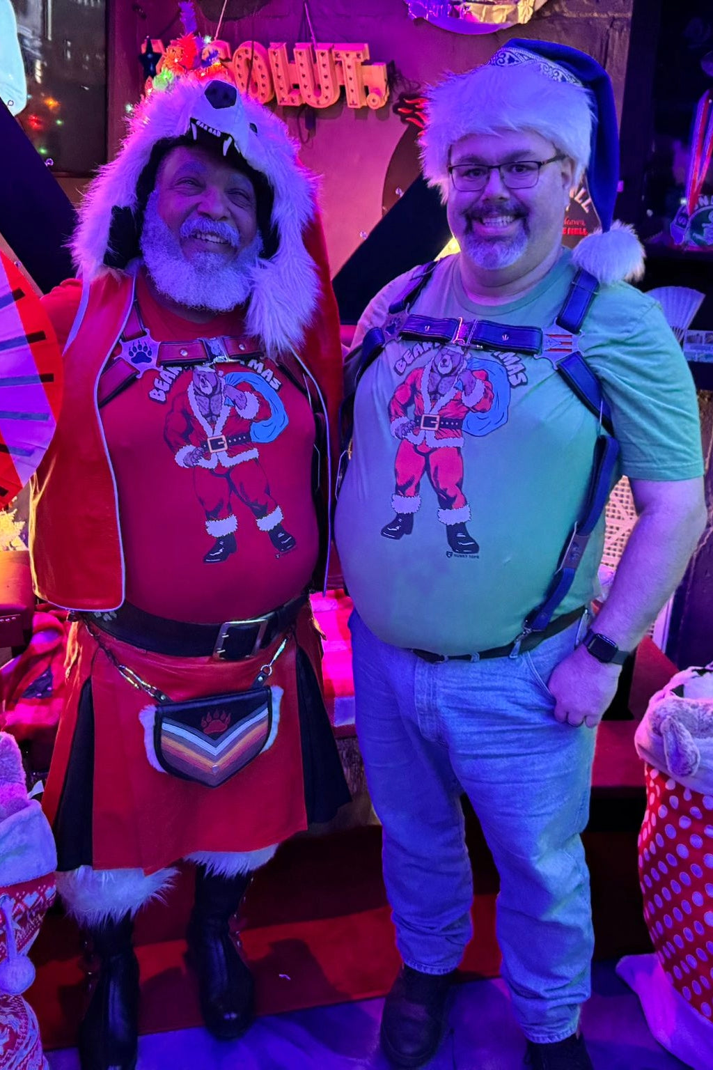 Celebrate the holidays in style with our Beary Christmas T-Shirt. Feel the joy of the season as you slip into this festive design, featuring a hunky bear in a Santa suit. It's perfect for gay bears who want to add humor, warmth, and a sense of belonging to their holiday wardrobe. Let this shirt be your reminder that the holidays are about laughter, community, and embracing who you are. The comfortable fit makes you feel relaxed, confident, and fabulous at every festive gathering. Wear it and let everyone see your holiday spirit shine, bringing Christmas magic—with a bear twist—to any celebration.