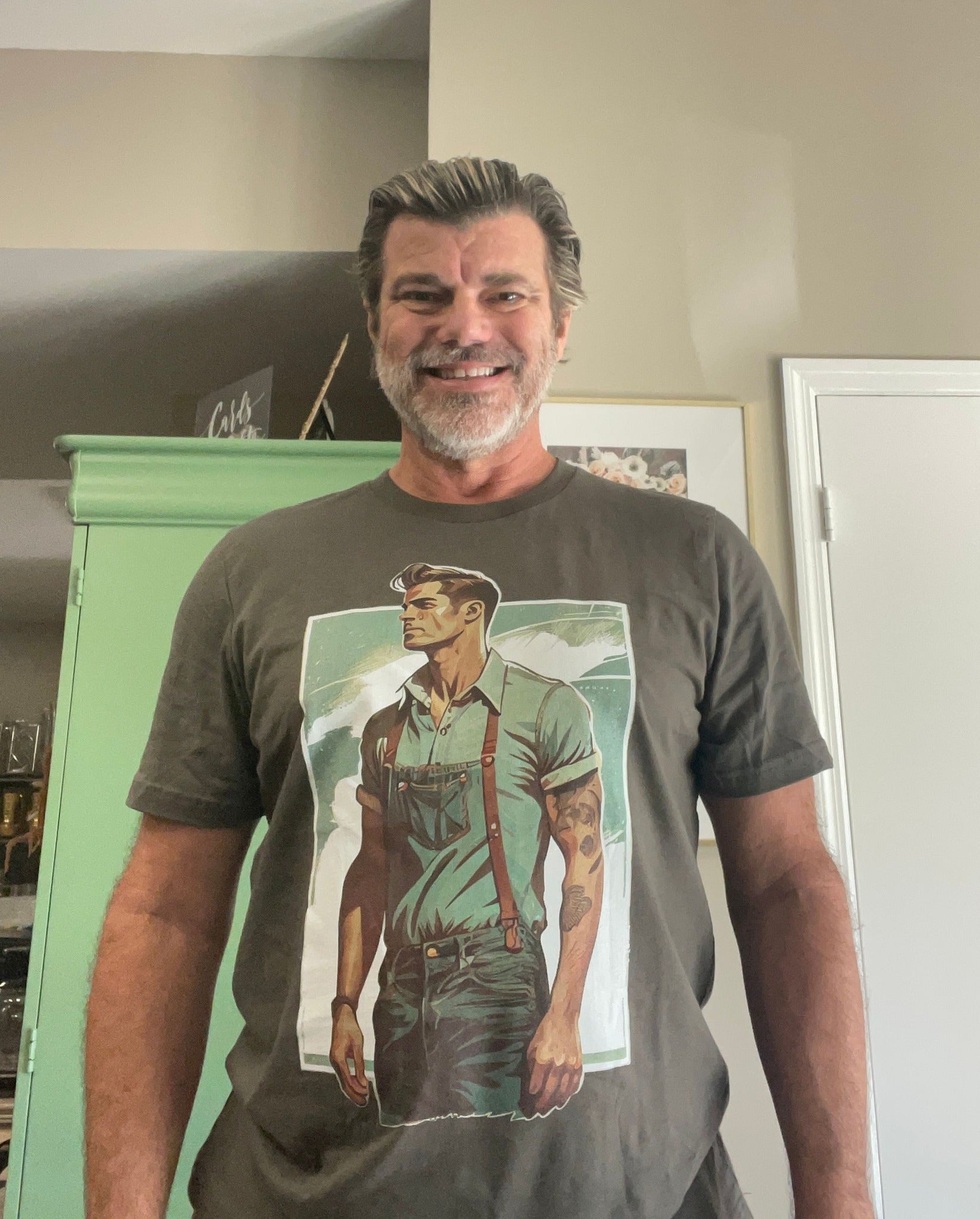 Embrace the power of love and hard work with our Gay Farmer Pride T-Shirt! This trendy graphic tee showcases a beautifully illustrated handsome male farmer wearing bib overalls, making it a fantastic choice for the LGBTQ community and their allies. Gift this one-of-a-kind shirt to your favorite farmer, or add it to your collection to wear your support proudly.