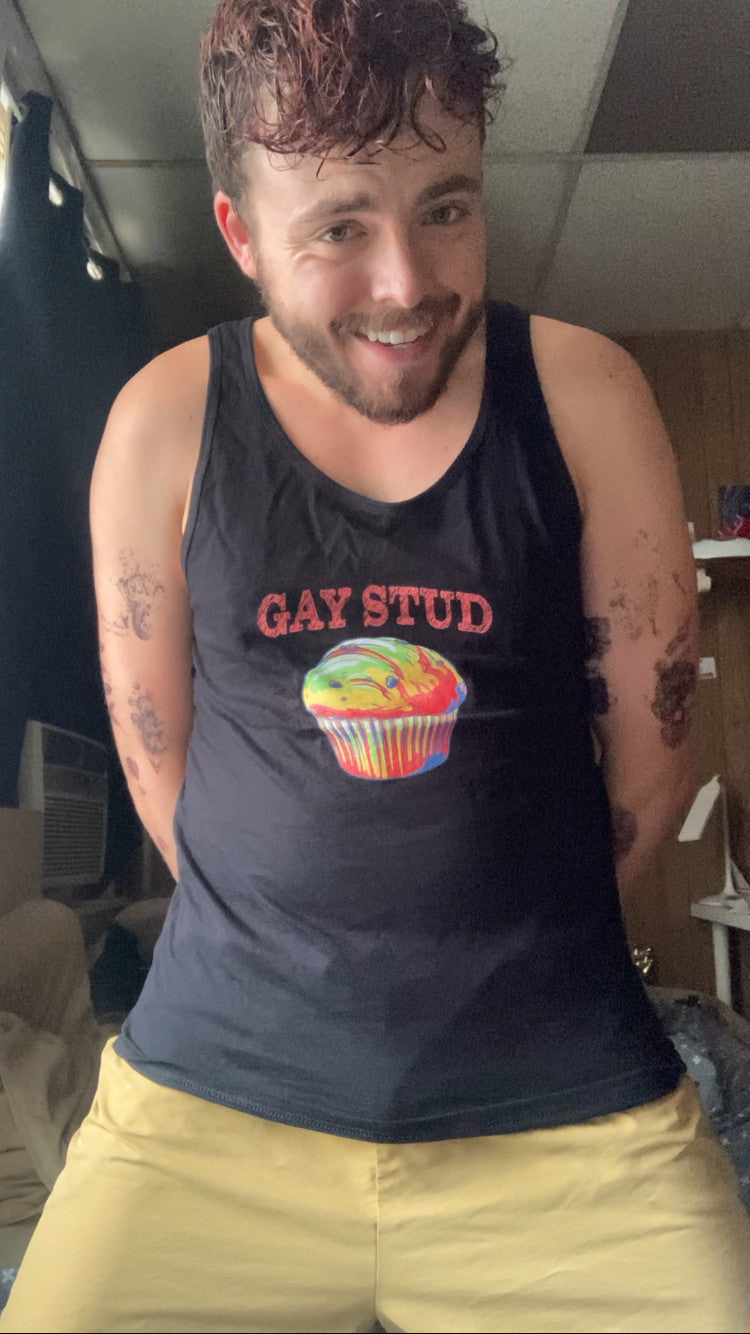 If you're more than just a regular stud, our Gay Stud Muffin Tank Top is the way to show it. Perfect for those hot summer days, or whenever you feel like showing off those biceps, this tank top celebrates your playful, sweet side in a fun and stylish way. Made from soft and comfortable materials, this tank top is not just a statement, it's a conversation starter. Go ahead, wear your charm on your sleeve—well, in this case, on your chest. Because who doesn't like a stud muffin, especially one with such great taste in clothes?