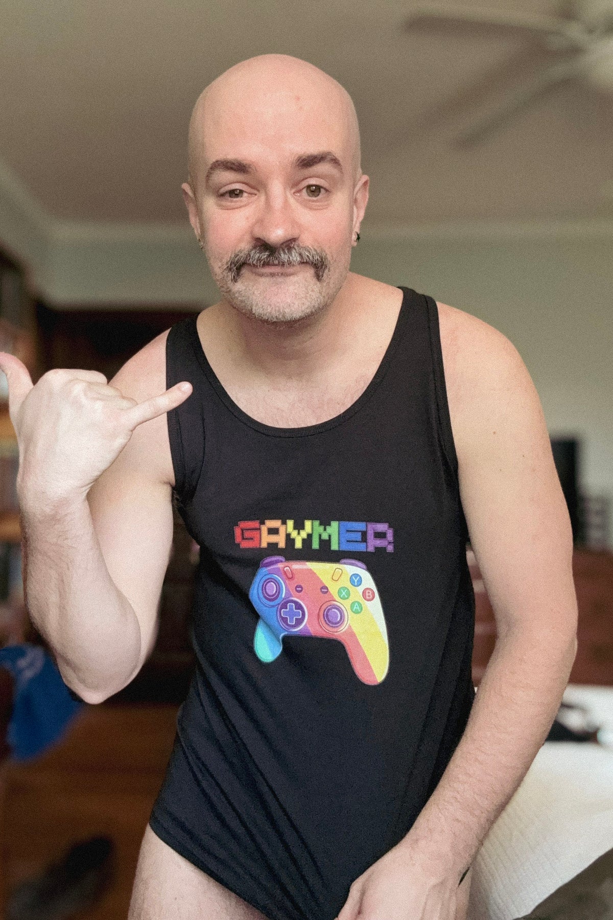 Flaunt your pride as a gamer and a member of the LGBTQ+ community with our vibrant "GAYMER" tank top! This unique design features the word "GAYMER" in bold rainbow colors, accompanied by a striking graphic of a gaming controller in a rainbow color scheme. Specifically crafted for gay gamers, or "gaymers," this tank top is a fantastic way to express your passion for gaming and pride in your identity. Enjoy the comfortable fit and high-quality print, making this tank top perfect for gaming sessions, Pride events, or casual wear.