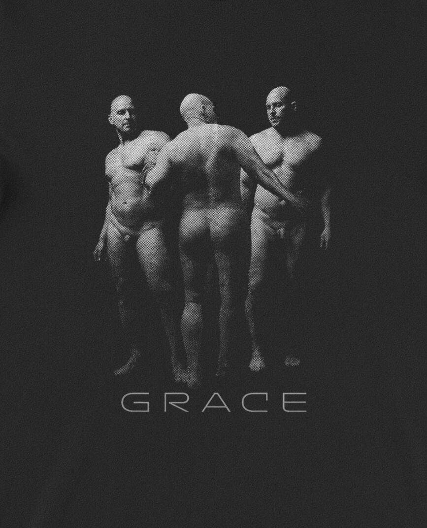 Embrace the fusion of strength, art, and elegance with our "GRACE" T-shirt. A sophisticated black backdrop sets the stage for a trio of figures that represent unity, power, and the beauty of the human form. This monochrome design exudes a timeless aura, reminiscent of classical sculptures, capturing the raw essence of human grace.