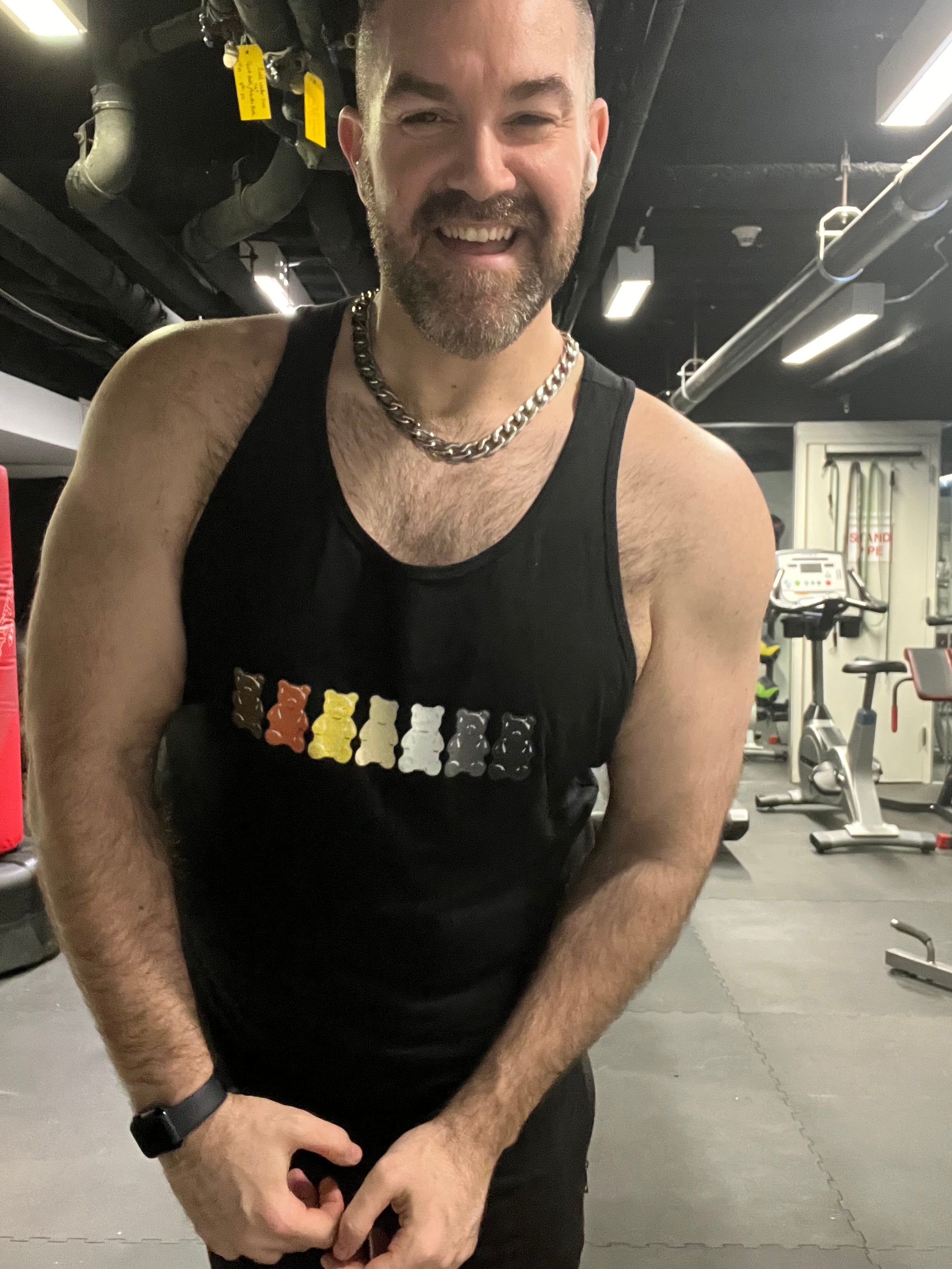 Show off your Bear Pride with our Gummy Bears Tank Top! This stylish tank features an adorable and colorful lineup of gummy bears, each representing the colors of the bear pride flag. Perfect for pride events, casual outings, or gym wear, this tank top is designed to celebrate the diversity and unity within the bear community.