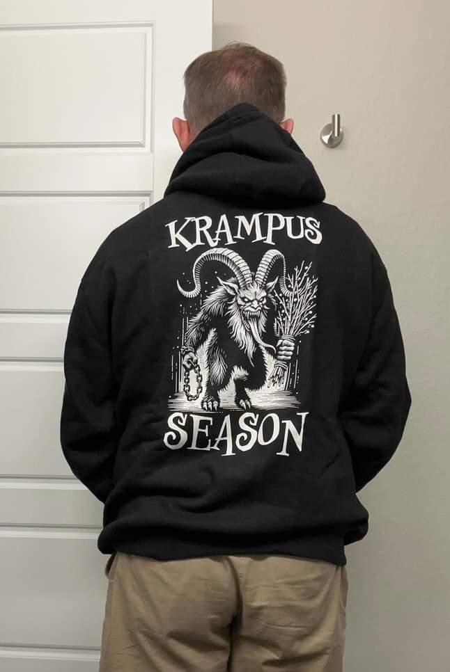 Embrace the darker side of the holiday spirit with our "Krampus Season" Tee. This bold shirt features the iconic figure of Krampus, a legendary holiday rogue, bringing a twist to your festive apparel. Whether you're attending a quirky Christmas party or just want to stand out this winter season, this tee's detailed, eerie artwork is sure to capture attention and start conversations.