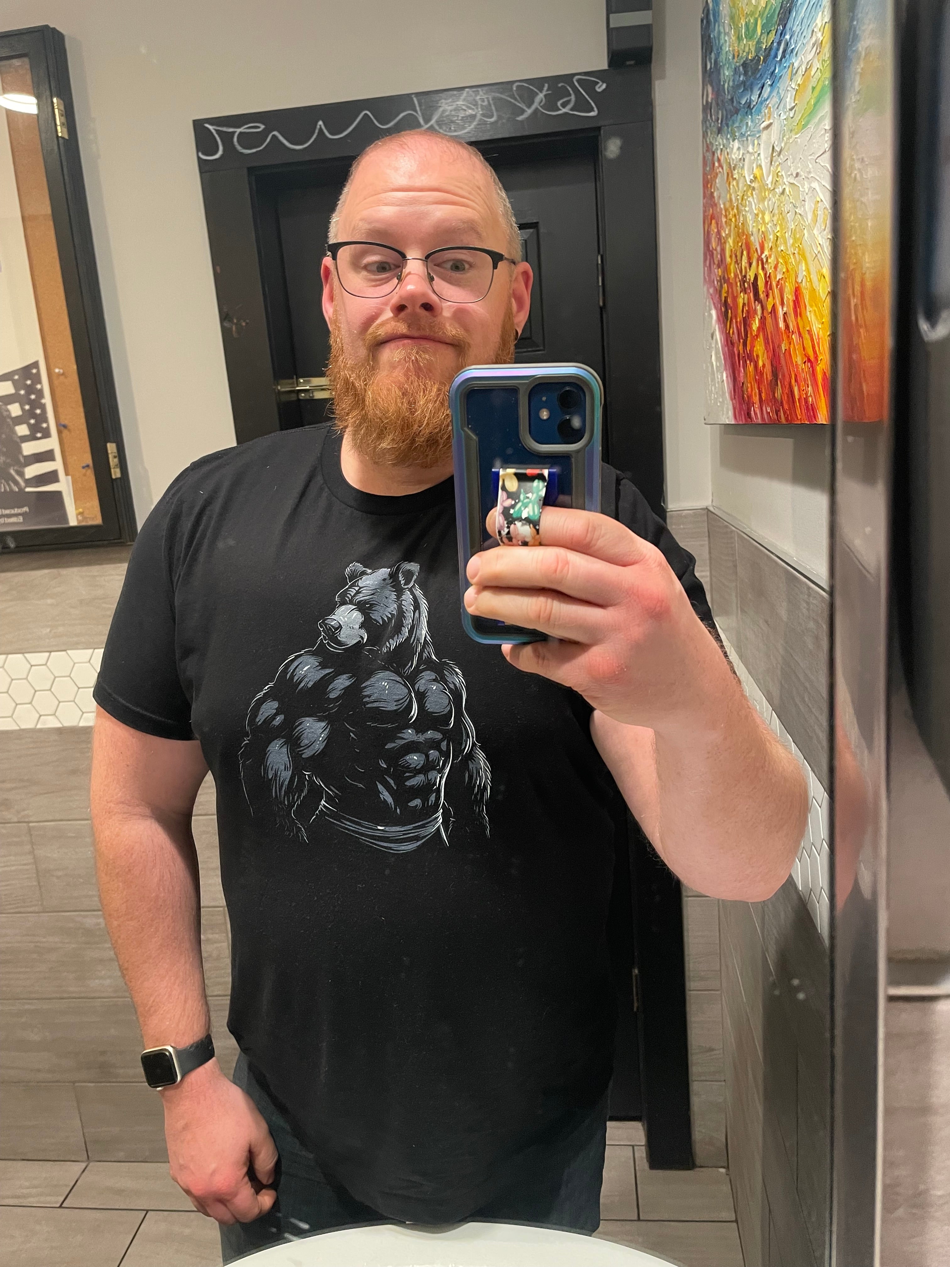 Rendered in striking detail against the black backdrop of the shirt, the bear's muscular form is both a nod to your physical prowess and a symbol of your protective instincts. It's a piece that brings together the might of the bear and the heart of the man who wears it.