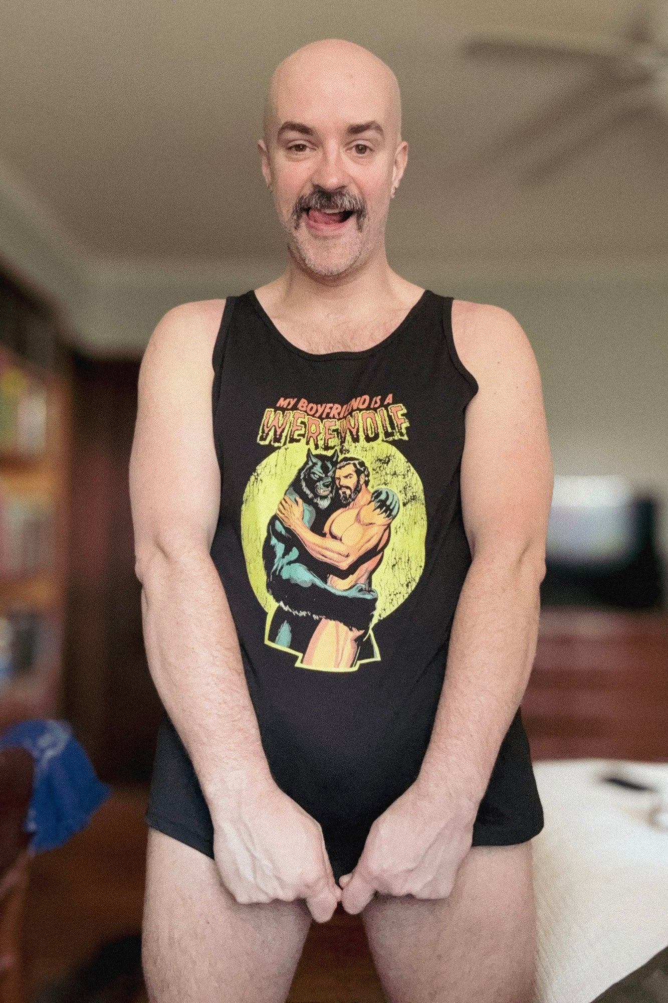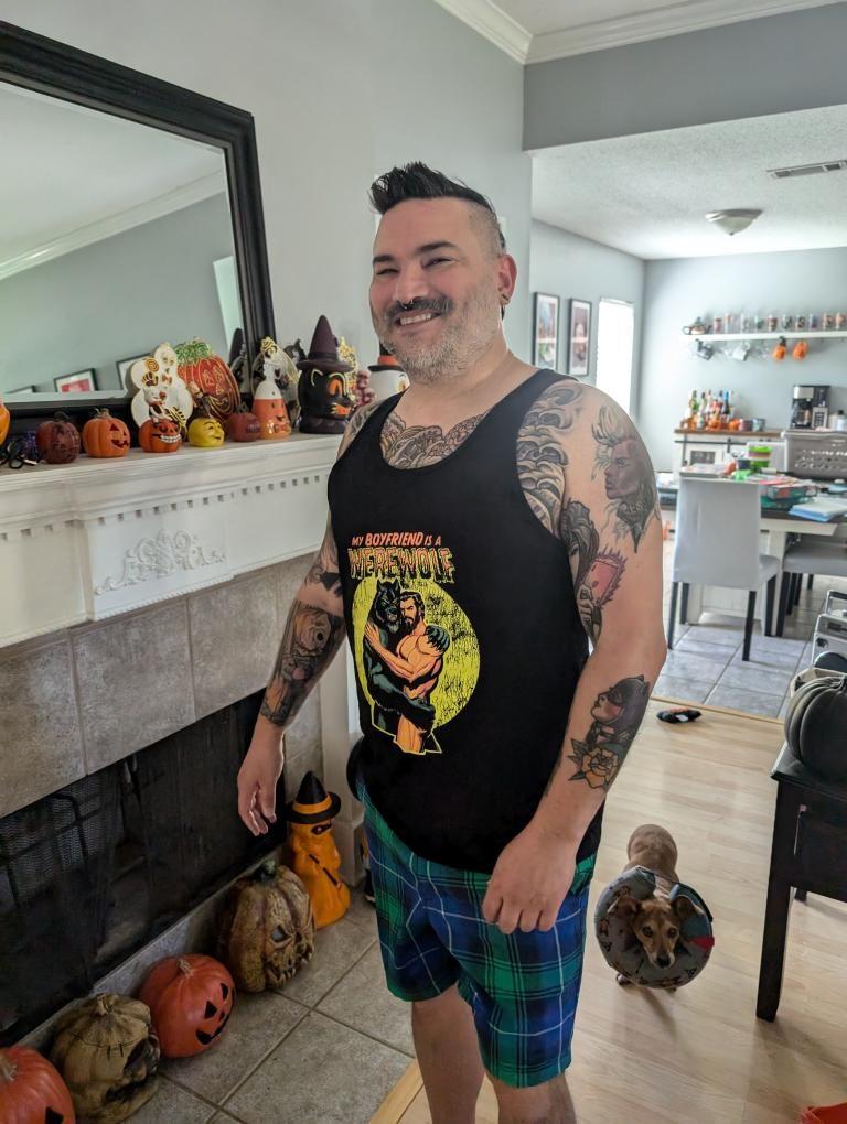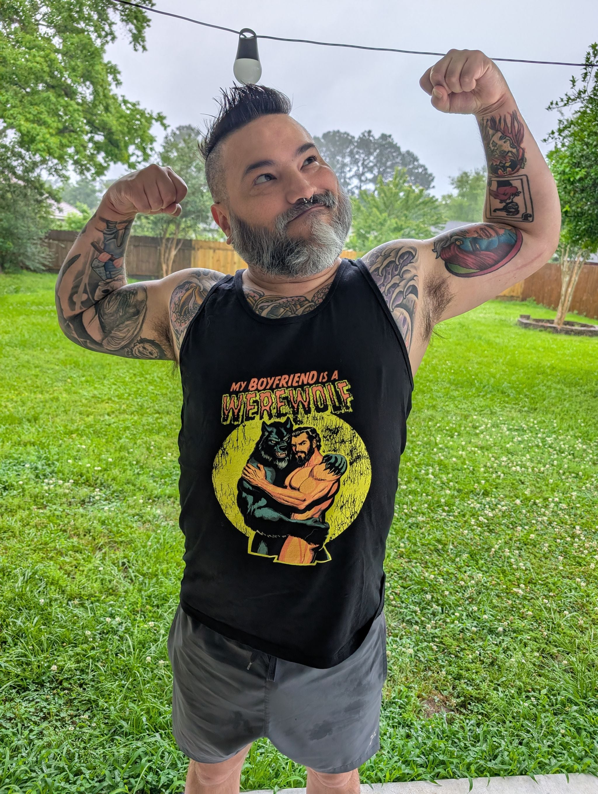 This tank is all about confidence and individuality. Whether you’re hitting the gym, attending a Gay Halloween party, or just enjoying some summer sun, this tank top helps you express yourself with boldness and pride. The striking embrace between a muscular man and his werewolf partner will have heads turning and conversations flowing. It’s more than a tank top—it’s a declaration of fierce, unapologetic love.