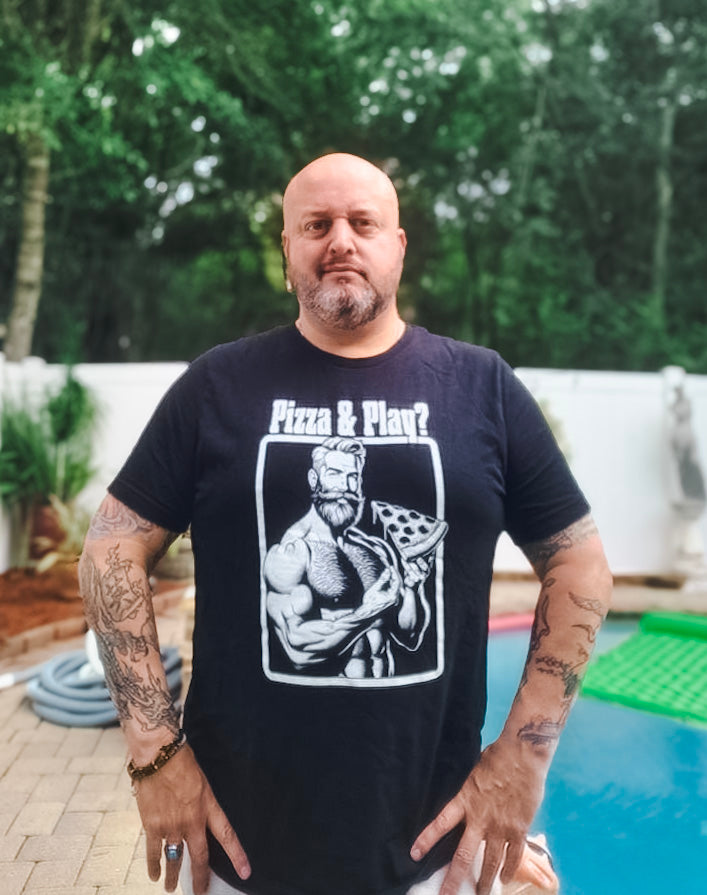 The graphic is bold and enticing—a muscular figure with a mischievous grin holding out a pizza slice, symbolizing the start of a night where indulgence is on the menu in more ways than one. It's a flirtatious foray into fun, suggesting that there’s always room for a little extra on the side.