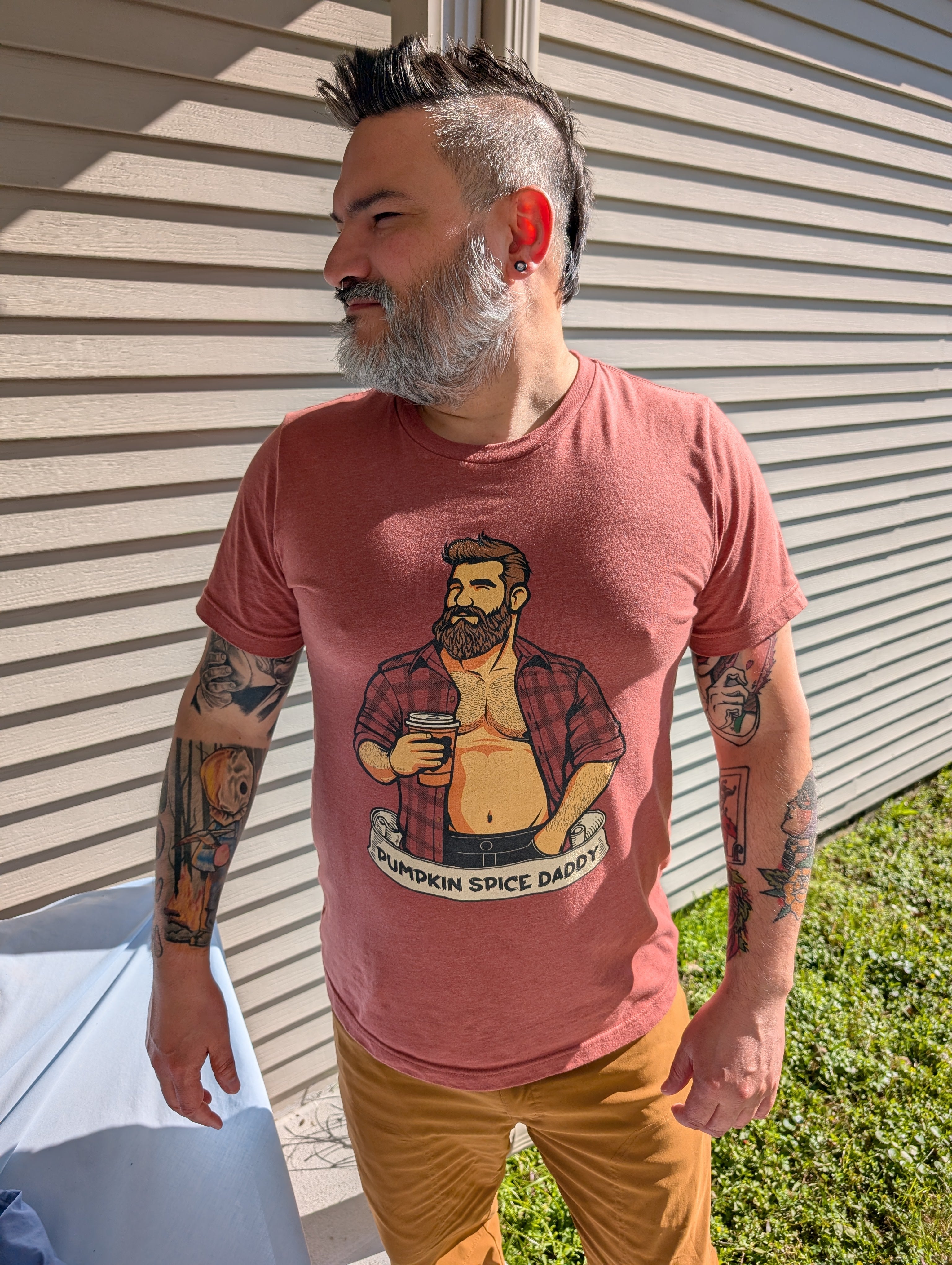 Unleash your inner "Pumpkin Spice Daddy" and embrace the cozy vibes of fall with this fun and flirty t-shirt! Designed for those who know how to rock autumn in style, this tee is more than just an outfit—it's a statement of confidence and personality. Perfect for crisp autumn days, pumpkin patch visits, or enjoying your favorite latte, this shirt keeps you looking effortlessly sexy while celebrating your love for all things fall. Whether you’re grabbing drinks with friends or spending a lazy day indoors, this shirt is a must-have to spice up your wardrobe.