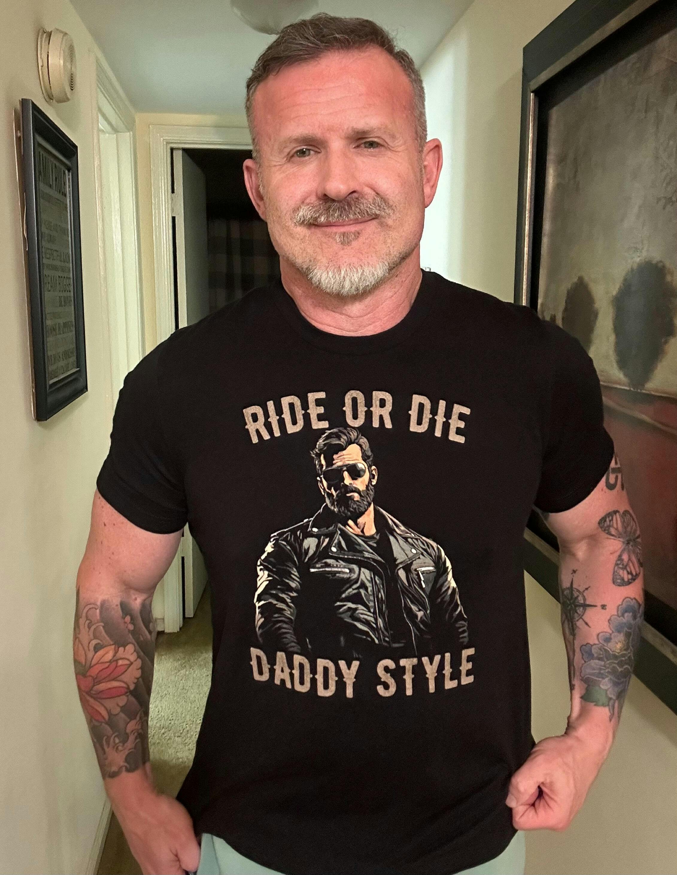 The slogan "Ride or Die, Daddy Style" encapsulates a lifestyle choice—a commitment to authenticity, intensity, and a dash of rebellious spirit. Whether you identify as a "daddy" in the modern vernacular or resonate with the audacity the term represents, this shirt is designed for you.