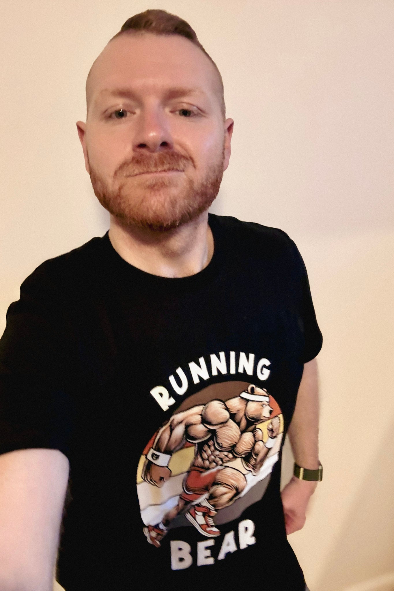 Show off your strength and pride with the Running Bear Tee – a bold celebration of the power, resilience, and camaraderie of the bear community. This striking design features a muscular bear in motion, embodying determination and confidence against the warm hues of the bear pride flag. It's more than a t-shirt – it’s a statement of identity and belonging.