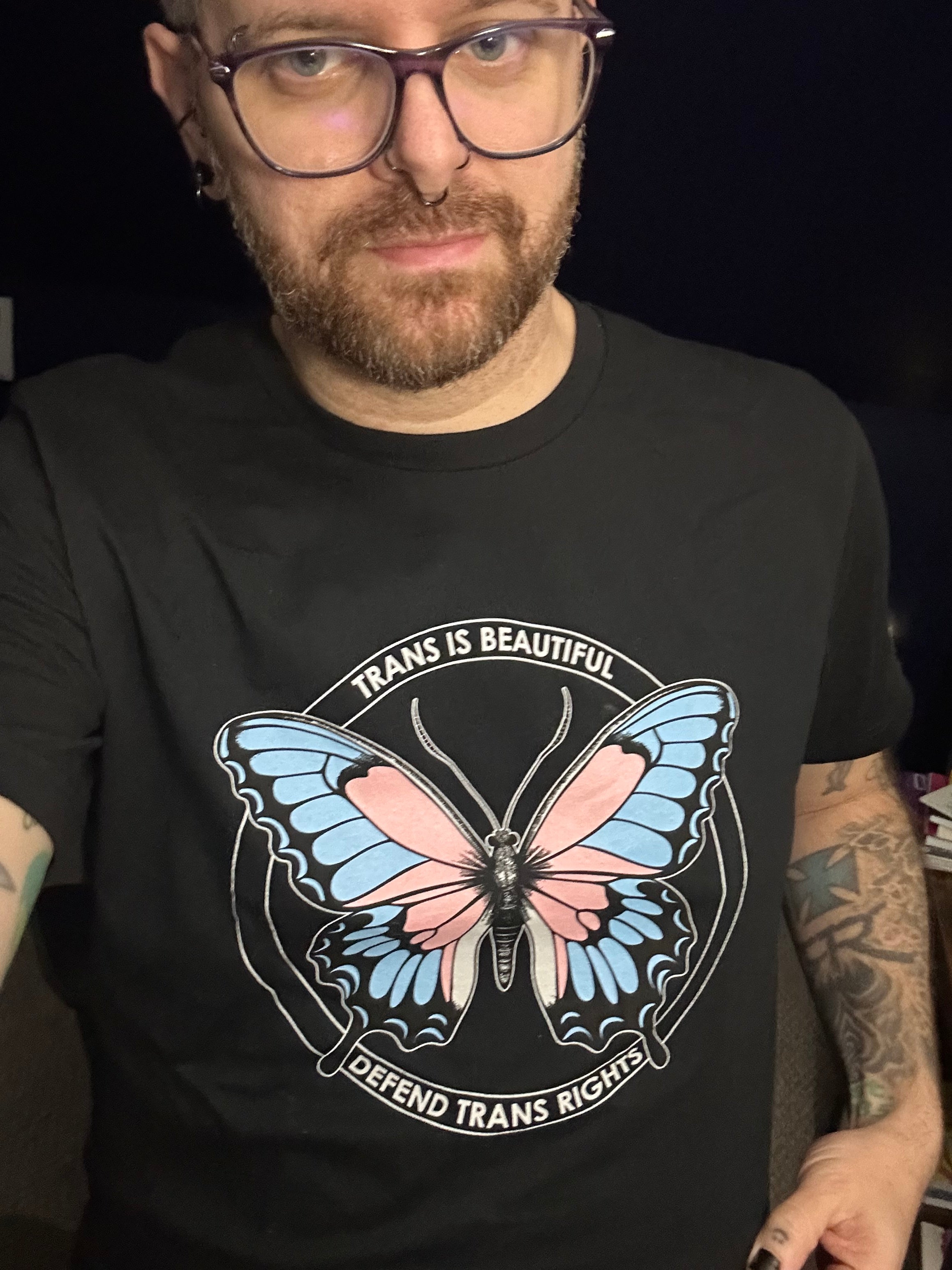 The transformative journey of a butterfly serves as a deeply resonant symbol for the trans experience. Like the butterfly, each individual in the trans community undergoes their own metamorphosis, evolving into the person they were meant to be. Our shirt captures this powerful narrative in the colors of the trans pride flag, amplifying the message that to be trans is to be beautiful.