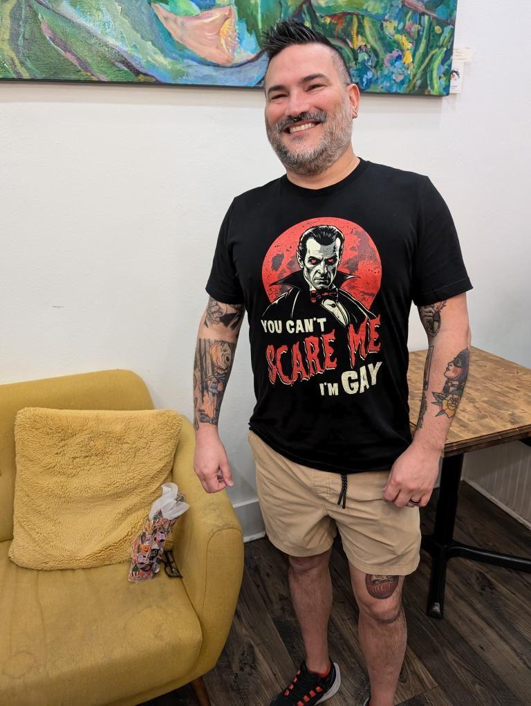 This bold T-shirt is all about embracing your true self without fear. Perfect for Halloween season or any time of year, it makes a powerful statement: you're proud, you're brave, and nothing can scare you. The striking design captures that fearless attitude, turning a classic vampire into a symbol of pride and defiance. Whether you're at a Halloween party or just living life authentically, this tee reminds you and everyone around you that bravery comes from being unapologetically yourself.